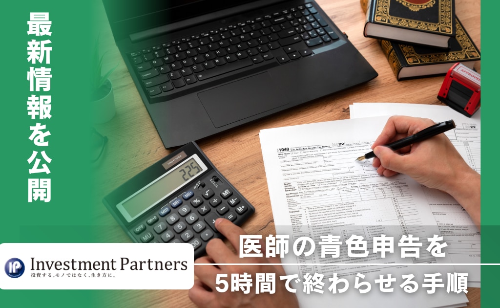 多忙な医師の先生方の中には、確定申告の負担が大きいと感じている方もいるのではないでしょうか?青色申告の最大65万円控除は大きな節税メリットがありますが、「複雑で時間がかかる」と敬遠されがちです。 しかし、正しい手順とツールを使えば、青色申告は5時間程度で完了させることができます。 たとえば、年収1,200万円の医師なら、青色申告で年間約28万円※の節税効果が見込めます。 この記事では、「青色申告を5時間で完了させる」ことを目標に、効率的な手順を徹底解説します。事前準備、会計ソフトの活用、そしてe-Taxによる提出など、青色申告の恩恵を最大限に享受する方法をお伝えします。